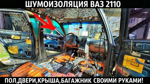 ШУМОИЗОЛЯЦИЯ ВАЗ 2110,СВОИМИ РУКАМИ!ПОЛ,ДВЕРИ,КРЫША,БАГАЖНИК!ПОДРОБНО!