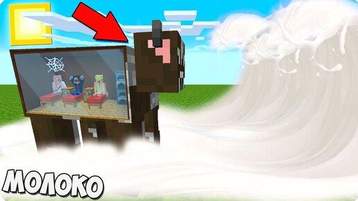 🐮ДОМ ВНУТРИ КОРОВЫ ПРОТИВ ЦУНАМИ ИЗ МОЛОКА ШЕДИ НУБИК И ДЕВУШКА В МАЙНКРАФТ 100% ТРОЛЛИНГ MINECRAFT