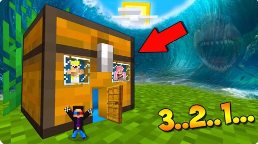 🌊🎁МЫ ПОСТРОИЛИ БАЗУ В СУНДУКЕ ПРОТИВ ЦУНАМИ В МАЙНКРАФТ ШЕДИ НУБИК И ДЕВУШКА 100% ТРОЛЛИНГ MINECRAFT