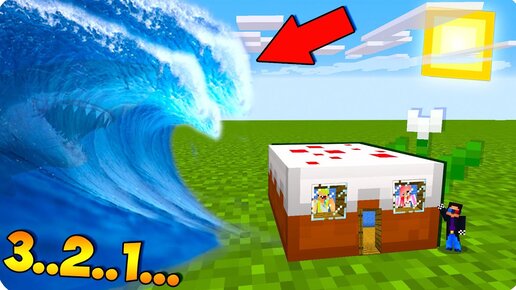 🌊🍰ПОСТРОИЛИ БАЗУ В 1 БЛОКЕ ТОРТА ШЕДИ НУБИК И ДЕВУШКА ПРОТИВ ЦУНАМИ В МАЙНКРАФТ ТРОЛЛИНГ MINECRAFT