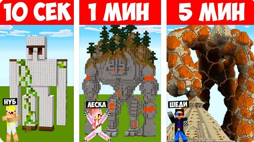 💪ШЕДИ НУБ И ДЕВУШКА СТРОЯТ ГОЛЕМА ЗА 10 СЕКУНД/1 МИНУТ/5 МИНУТ В МАЙНКРАФТ БИТВА СТРОИТЕЛЕЙ MINE