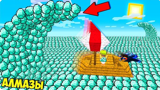 💎ШЕДИ И НУБИК ПЕРЕЖИЛИ ЦУНАМИ ИЗ АЛМАЗОВ НА ПЛОТУ В МАЙНКРАФТ 100% ТРОЛЛИНГ ЛОВУШКА MINECRAFT