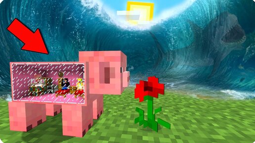 🌊🐷ДОМ ВНУТРИ СВИНЬИ ПРОТИВ ЦУНАМИ ШЕДИ НУБИК И ДЕВУШКА В МАЙНКРАФТ 100% ТРОЛЛИНГ ЛОВУШКА MINECRAFT