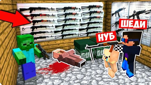 Нуб и ПРО Нашли Склад с Оружием! Зомби в Майнкрафт! Нуб и ПРО Зомби Апокалипсис Minecraft Мод Оружие