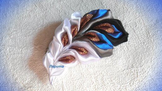 Канзаши заколка для волос из атласных лент, лепесток лодочка МК