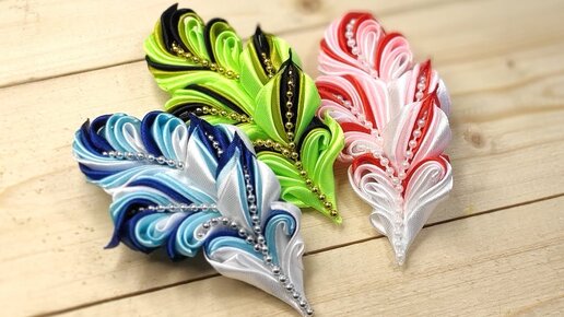 Ка Вам такие пёрышки? Брошь перо из атласных лент своими руками, канзаши 🌼