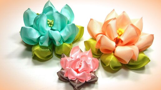 Воздушный лотос из лент, канзаши, МК / Diy satin ribbon flower, kanzashi