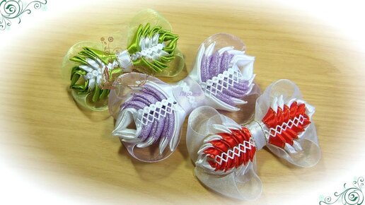 Бантики канзаши из лент своими руками / diy bow
