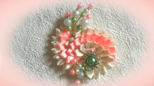 Брошь из ленты 0,6 см своими руками, канзаши, МК.