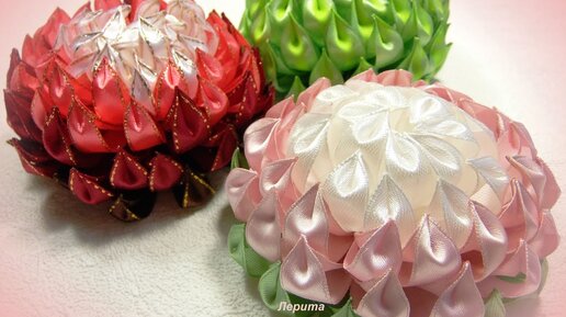 Цветы канзаши из узкой ленты 1,2 см, МК