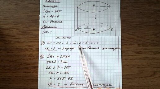 Площадь Боковой Поверхности Цилиндра Равна 36п, а Диаметр Основания Равен 6. Найдите Высоту Цилиндра