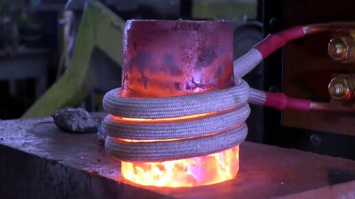 Плавлю алюминий вместе с тиглем! Индукционный нагреватель МИКРОША-15-8-ВЧ.