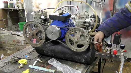 Компрессор ЗИЛ 130 в гараже. Мотор потянул только один компрессор.