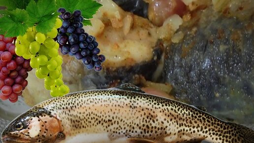 ФОРЕЛЬ С ЖАРЕНЫМ ВИНОГРАДОМ И ЛУКОВЫМ СОУСОМ