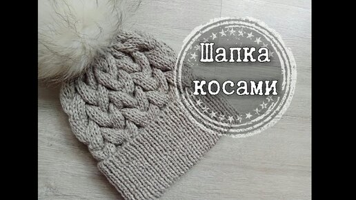 Шапка с косами, вязание спицами, Hat with braids, DIY