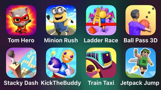 Tom Hero, Minion Rush, Ladder Race, Ball Pass, Stacky Dash, Train Taxi, Kick the Buddy, Jetpack Jump