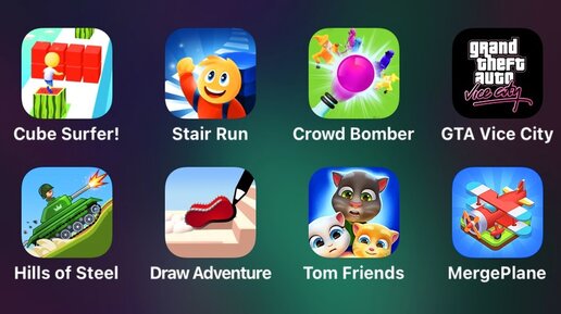 Cube Surfer, Stair Run, Crowd Bomber, GTA Vice City, Hill of Steel, Draw Adventure, Tome Friends