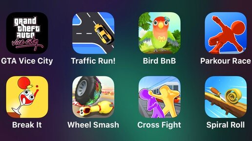 Gta Vice City, Traffic Run, Bird BnB, Parkour Race, Break It, Wheel Smash, Cross Fight, Spiral Roll
