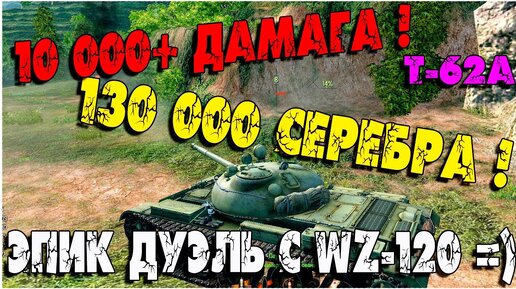Лучший Бой WoT - Т-62а 10000+ Дамага! 130 117 Серебра. Эпик Моменты!