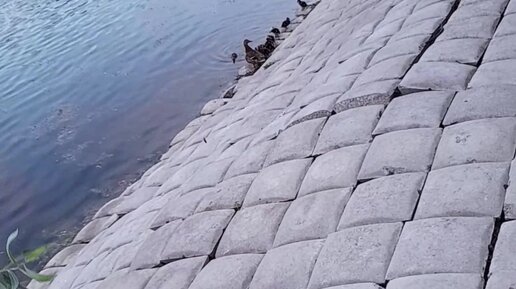 В парке уточка с утятками.