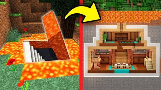 КАК Построить Современную Секретную Лавовую Базу Туториал в Майнкрафт (Скрытый Дом Бункер)Нуб Строит