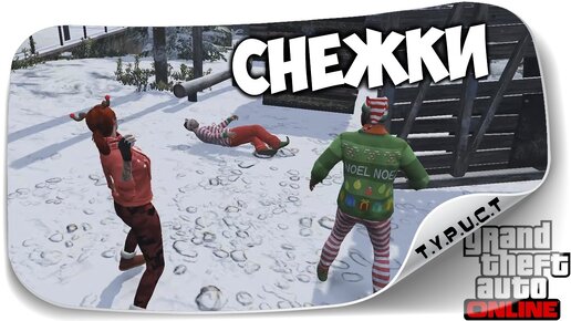Отхватили с Филипином снежками по голове от моей банды в GTA 5 Online