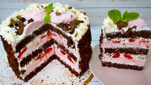 Шоколадный торт с зефиром и клубникой - сладкое наслаждение
