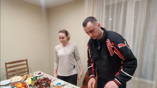 Дома встречают по - королевски ! Миша приготовил шашлыки , Светланка испекла торт