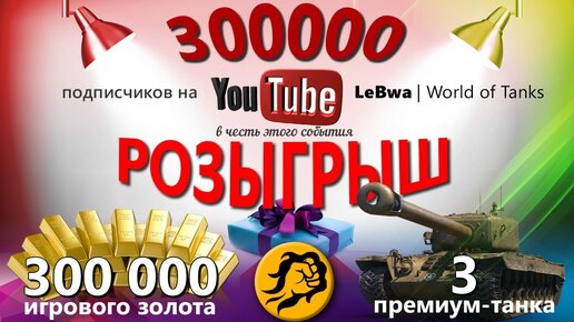 Розыгрыш 300.000 голды и 3 премиум танка в честь 300.000 подписчиков
