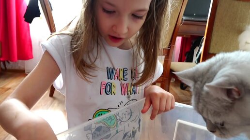Настя котенок Бантик и ящерицы. Видео для детей