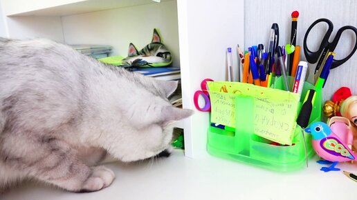 Смешной котенок Бантик, что ты там нашел на столе?!