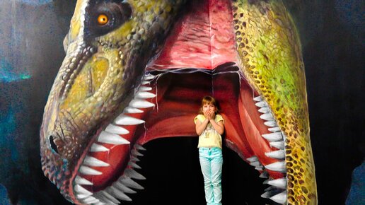 Nastya and dad walk in the Dinosaur Park and the Museum of Illusions