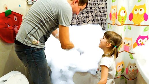 Настя делает много пены с игрушками щенячий патруль!