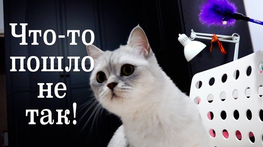 Котенок Бантик играет на стуле.