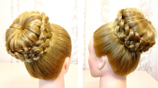 Прическа с бубликом. Прическа с плетением. Видео урок 3. Braided hairstyle.