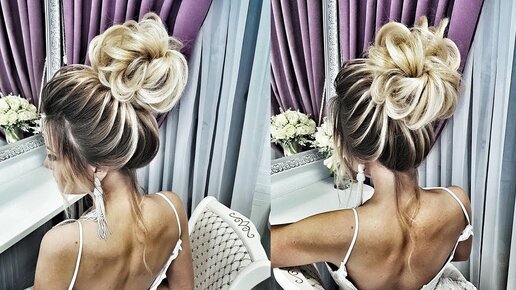 Красивые прически пошагово.Высокий пучок на узлах.Обучение онлайн