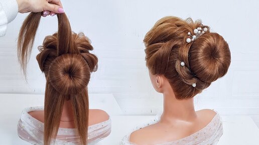 Простая объемная прическа.Красивые прически пошагово.Пучок