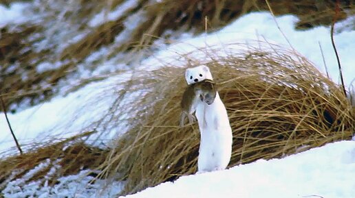 Ласка (Mustela nivalis). Охота на мышей. Шахдагский парк.