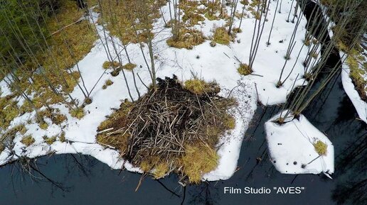 Бобровое поселение: хатка, плотина, каналы. Исследование при помощи коптера