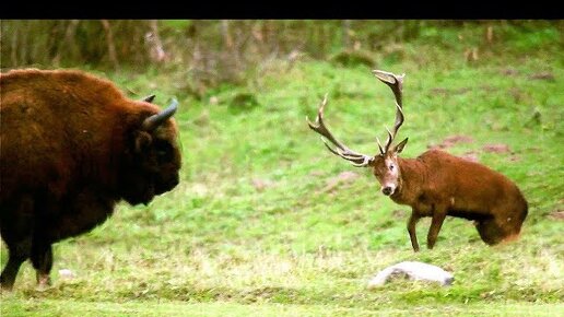 Олень против зубра!