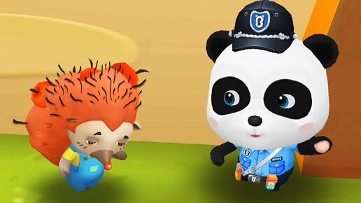 Panda de la policía en busca de papá erizo - Bebé Kiki oficial de policía