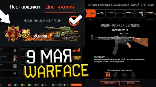 9 МАЯ В WARFACE! STG 44,ВИНТОВКА МОСИНА,АПС,ППШ ВОЗВРАЩАЮТСЯ!