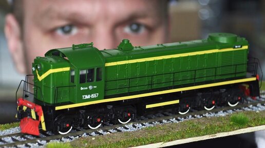 Обзор модели душевного тепловоза ТЭМ1-1557 с вагонами в масштабе HO / Train / Железная дорога /