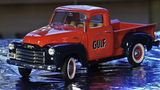 Модель автомобиля Gmc 150 Gulf с бензоколонкой в 18 масштабе фирмы Greenlight