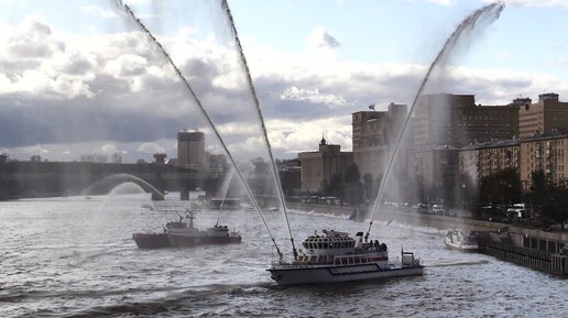 Пожарно-спасательные корабли и катера МЧС на водном шоу в Москве - 14 сентября 2019г.