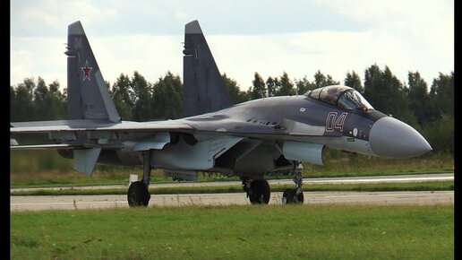 Самолеты Су-35С - рулежка после пилотажа на аэродроме Кубинка - 2017