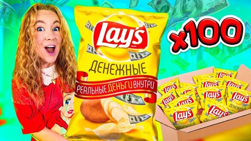 ДЕНЕЖНЫЕ ЧИПСЫ! КУПИЛА 100 ПАЧЕК! СКОЛЬКО ДЕНЕГ ВНУТРИ Я НАШЛА?
