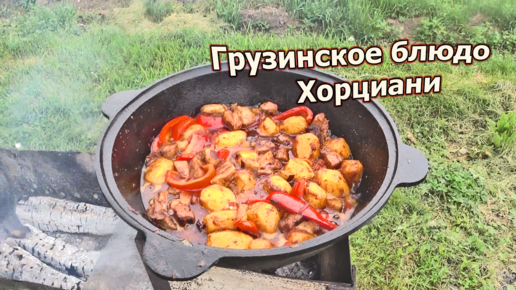 Картошка с мясом и овощами по Грузински! Готовим хоциани это шикарное блюдо в казане на костре.