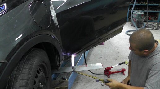 Chevrolet Bolt EV . Рихтовка алюминиевой двери.