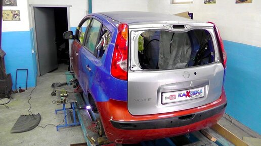 Nissan Note. Вытяжка задка. Наборка задней части Распила.